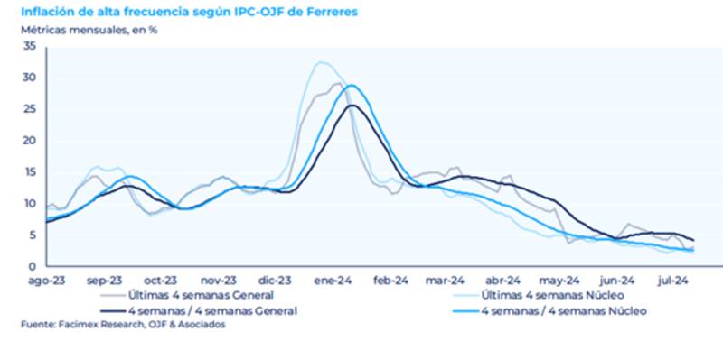 En un informe publicado por los analistas de Facimex Valores, detallaron que los datos de alta frecuencia mostraron que se consolida la desaceleración de la inflación, con un desplome de la núcleo.
