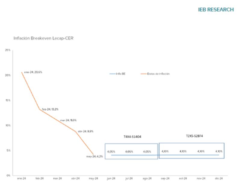 Desde el lado de la estrategia, desde Grupo IEB entienden que si se cree que la inflación para fin de año esté por debajo del 4%, tiene sentido tomar posiciones más largas en la curva de Lecap, que actualmente opera con TEMs en torno a 4,2% a partir de enero 2025.