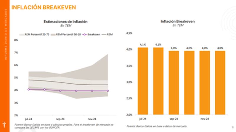 "La inflación esperada está bastante alineado con las protecciones del REM, que si bien estas últimas se ubican un poco por arriba no prevén que la inflación perfore el 4% mensual para este año", dijeron desde Grupo IEB.