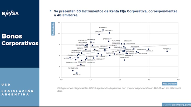 Los bonos corporativos de legislación local operan con tasas que también promedian al 7%.