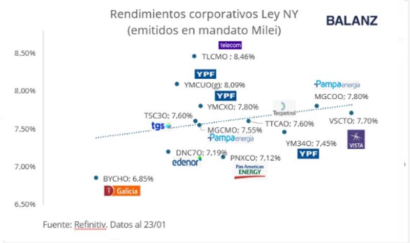 Esto mismo ocurre en los títulos corporativos ya que las obligaciones negociables de ley local terminan operando con tasas similares a de ley NY.