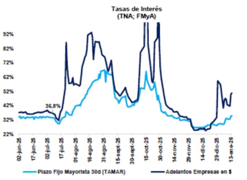 Este proceso se trasladó a las tasas en pesos del sistema financiero, aunque sun siguen siendo niveles de tasa de interés elevado.