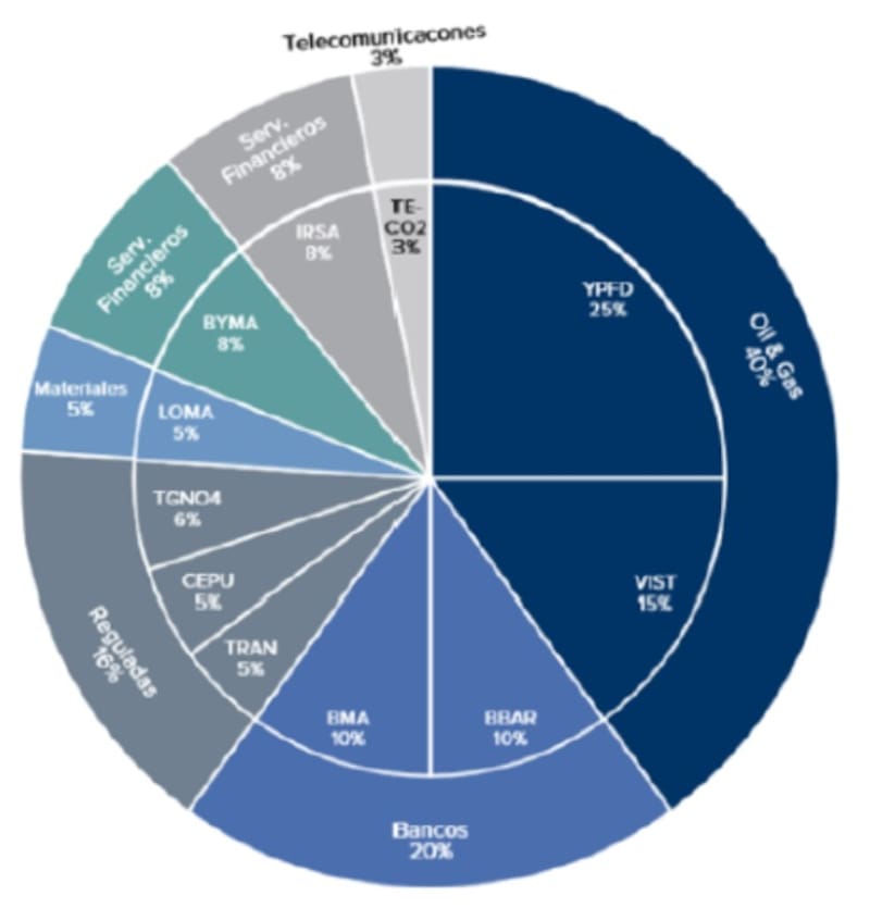 En términos generales, la cartera de acciones de Grupo IEB se confirma con un 25% en YPF, 15% en Vista, 10% en BBVA Argentina y 10% en Banco Macro. El resto se completa con 5% en Transener, 5% en Central Puerto y 6% en TGN. También se agrega un 5% en Loma Nega, 8% en BYMA, 9% en IRSA y 3% en Telecom.