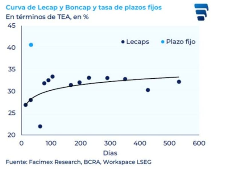 Así, la curva de Lecap dejó de tener pendiente negativa y pasó a operar con tasas más normales, habiendo alcanzado picos de tasas cercanos al 6% mensual antes de las elecciones.