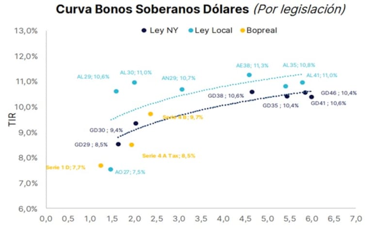 A la hora de seleccionar las distintas curvas para posicionarse en bonos en dólares, los analistas resaltan que favorecen títulos de las grandes compañías argentinas.