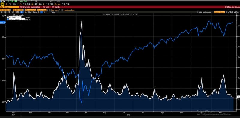 El índice de volatilidad VIX, opera en su menor nivel desde agosto y en uno de los valores mas bajos del año.