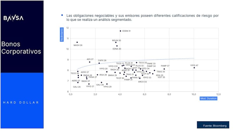 Por ello, si bien hay oportunidades en bonos y planteando el desafío en relación a la renta fija hacia adelante, los analistas resaltan el atractivo en las obligaciones negociables para perfiles conservadores y moderados.