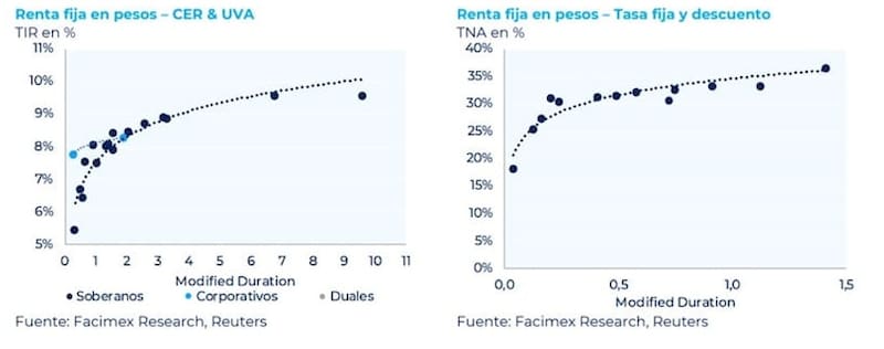 Las pendientes de las curvas en pesos se volvieron positivas, por lo que los plazos más largos están operando hoy con rendimientos más elevados.