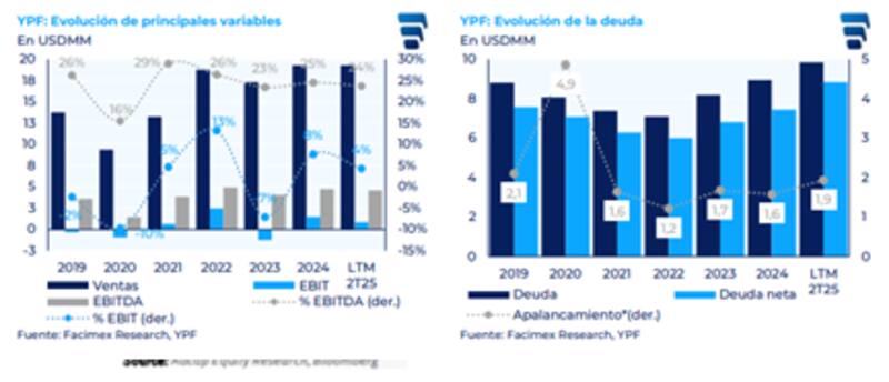 "Recientemente, YPF cerró el acuerdo para adquirir el 45% de los bloques La Escalonada y Rincón La Ceniza, ubicados al norte de Vaca Muerta. La posición financiera es saludable, con altas coberturas y graduando el capex para controlar el apalancamiento", remarcaron.