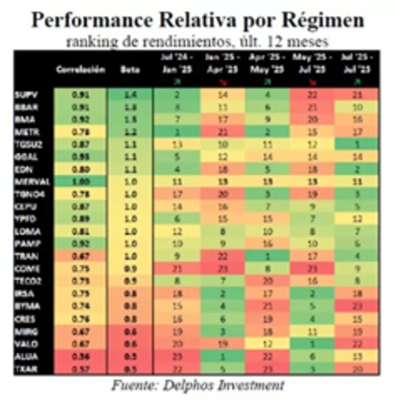 "Esto implica que los bancos tienden a amplificar los movimientos del mercado, es decir, suben más en los avances del mercado y caen con mayor fuerza en los retrocesos, como el que estamos atravesando actualmente. Esa característica técnica las posiciona como un termómetro clave del apetito por riesgo local", detalló.