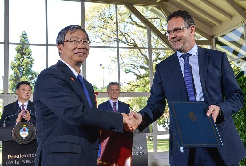 Firma de la ampliación del swap entre Yi Gang, presidente del Banco Popular de China y Guido Sandleris