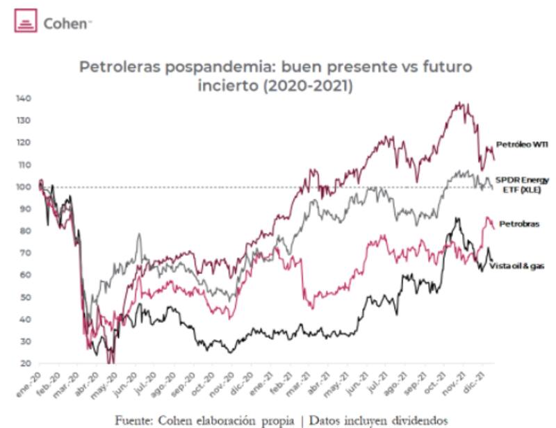 "Las tasas de dividendos también se tornaron atractivas, especialmente en el caso de Petrobras, cuyo dividend yield 2021 supera el 15%. Desde el mercado local, recomendamos Cedears de Vista Oil & Gas (VIST), Petrobras (PBR) y Exxon (XOM)", dijo el portfolio manager de Cohen.