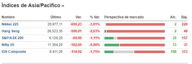 Además, el Nikkei, principal índice de la Bolsa de Tokio, sufrió hoy un recorte del 3,01%, hasta 20.977,11 puntos, debido a las preocupaciones sobre el crecimiento económico global que ya impactaron a Wall Street en la sesión del viernes. El índice ha cerrado en su nivel más bajo desde mediados de febrero tras registrar su mayor caída diaria desde finales de diciembre.
