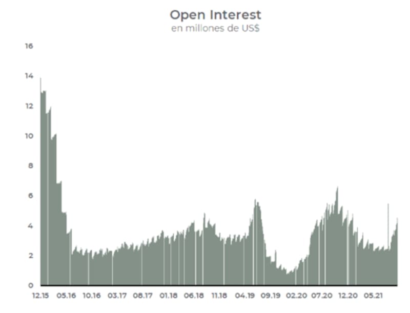 La dinámica del interés abierto va en línea con el aumento del volumen, el cual también se encuentra con una pendiente positiva.