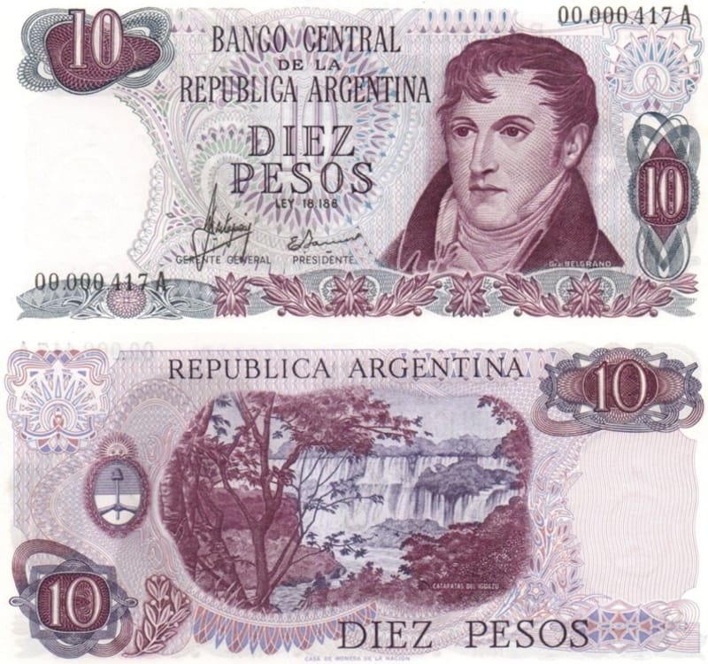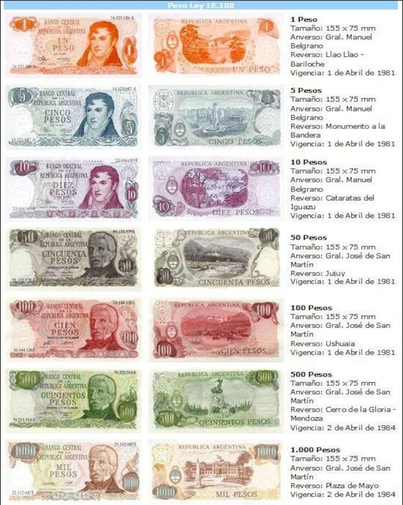 El nacimiento de los billetes de peso corresponden a la sanción de la Ley 18.188 por el cuál se dispuso como moneda vigente en todo el país la nomenclatura "peso argentino" y que se mantuvo hasta 1983.