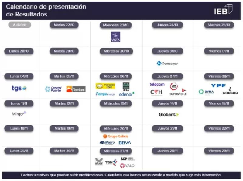 Las dos últimas semanas de noviembre se conocerá los números de Mirgor, Globant, Grupo Financiero Galicia, Banco Macro, BBVA, Aluar, Comercial del Plata, Grupo Financiero Valores y TGN.