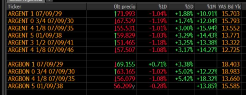Todos los tramos de la curva soberana argentina se encuentran operando a la baja.
