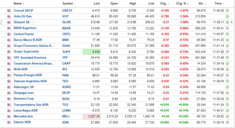 Del lado positivo se encuentran Edenor, Mercado Libre y Loma, con leves subas de entre 0,3% y 0,1%.