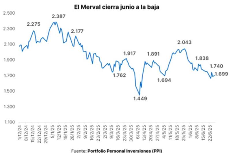 El S&P Merval en dólares cerró junio con una caída del 16% y acumula una merma del 23% en lo que va del año. De esta manera, ha regresado a operar en zona de mínimos del año.