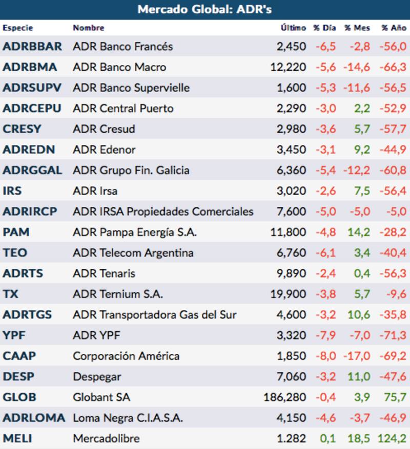 Mala jornada de los ADRs argentinos. Fuente: Rava Bursátil.