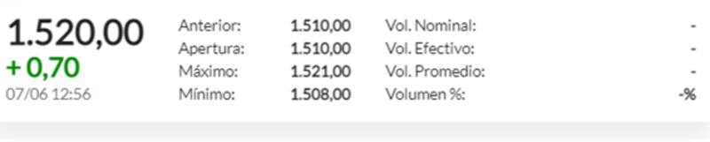 En sintonía con la debilidad de los bonos, el riesgo país opera al alza y vuelve a posicionarse por encima de los 1500 puntos, en 1520.