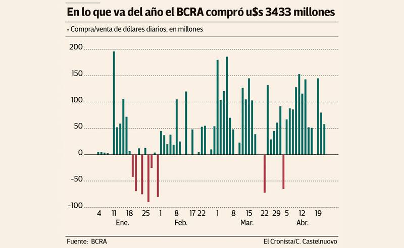 Otro rasgo positivo es que la autoridad monetaria ha logrado engrosar sus reservas en un nivel muy superior al que se observaba antes. "En lo que va de abril alrededor del 50% de esas intervenciones se transformaron en reservas versus el 5% que veíamos en marzo".