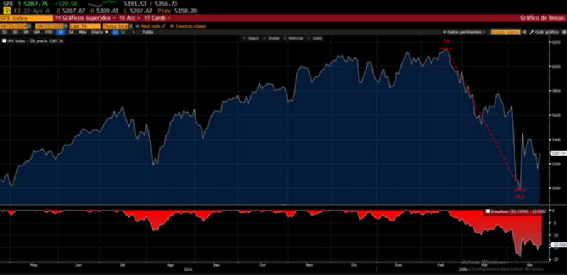 En medio de la mayor volatilidad, el S&P500 acumula una caída del 13,9% desde los máximos previos alcanzados a comienzo de este año.