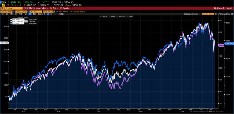 "Si bien venimos con caída fuerte en los índices, las proyecciones tanto en los múltiplos y caída en las ganancias de las empresas, creemos que el potencial bajista todavía puede ser más bajo. Estamos en un contexto de incertidumbre donde parte de la agenda política está generando movimientos muy abruptos y empezamos a ver que esto afecta en el sentimiento de las empresas y en el consumidor americano, lo cual es un riesgo muy fuerte", alertó.