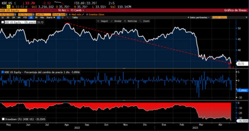 Desde los picos del 2022, el índice de bancos regionales cae 35,5 por ciento.