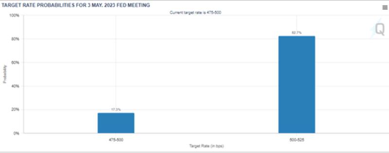 Mientras tanto el mercado sigue atento a una nueva suba de tasas de la Fed que ven efectiva tras la reunión de mañana a la vez que la volatilidad en el sector financiero volvió a estar en el centro de la atención.