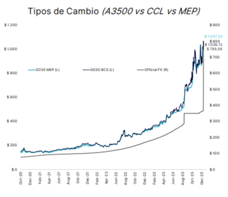 Entre las medidas llevadas a cabo por el nuevo equipo económico conducido por el ministro de economía, Luis Caputo, se produjo una devaluación del tipo de cambio oficial a $800.