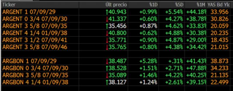 En el acumulado de la última semana, los bonos ganan entre 4,3% y 5,5%, mientras que, en el último mes, las ganancias son de entre 29% y 44%.
