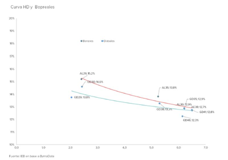Es decir, la misma se mantiene invertida ya que el mercado sigue viendo riesgos crediticios debido a la falta de dólares y al perfil de vencimientos desafiante.