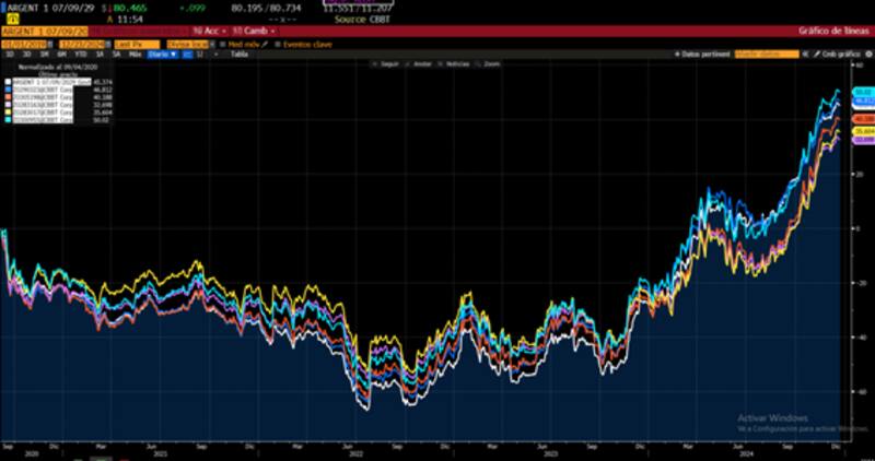 De esta manera, todos los bonos cotizan en máximos históricos y con ganancias si se toma en cuenta desde el momento en que salieron a cotizar en septiembre de 2020, tras el canje de deuda.