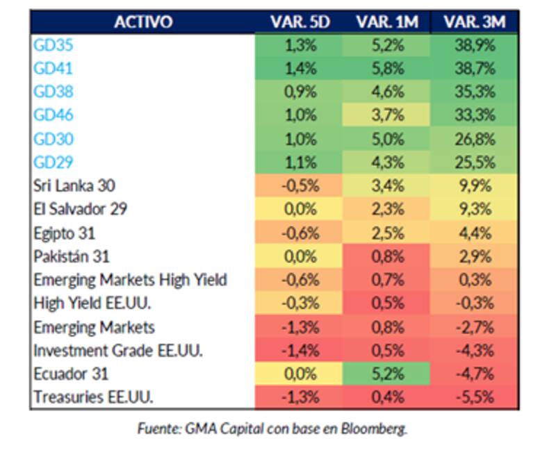 Bajo este panorama, desde Research Mariva siguen considerando que el GD35 es el bono más atractivo.