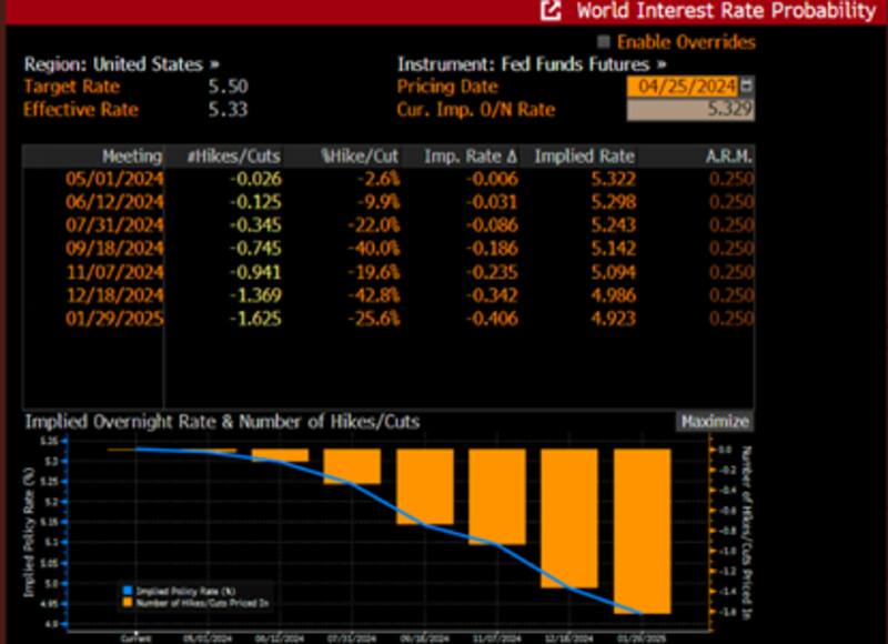 En este contexto, se consolida la idea del "higher for longer" de la Fed, por lo que el mercado consolida la idea de que la Fed mantendrá las tasas altas por más tiempo.