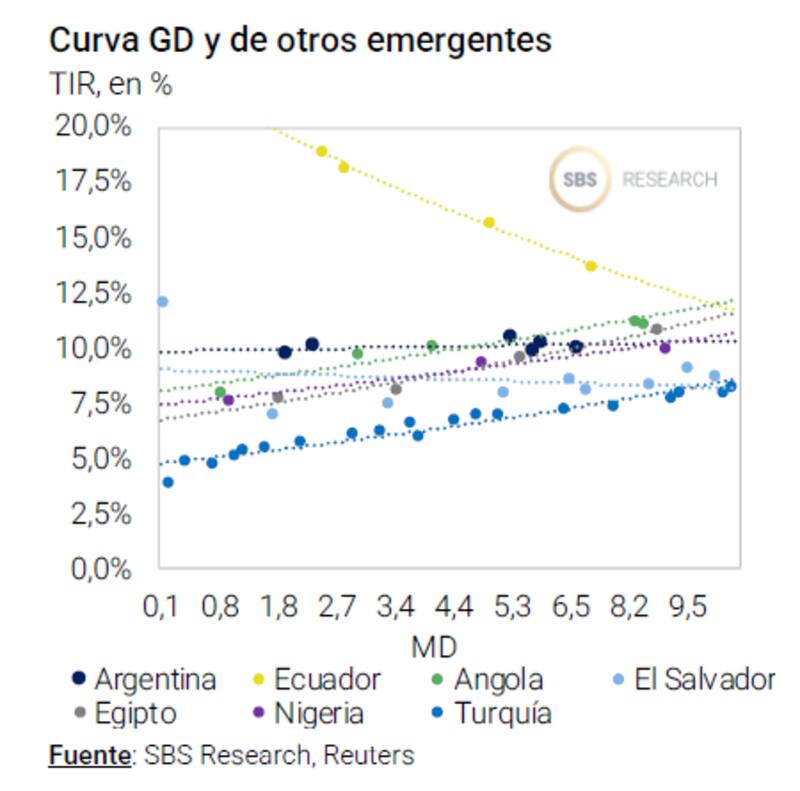 "Destacamos que una compresión aún mayor podría darse, creemos, ante un avance hacia la normalización del mercado cambiario. Nuestro análisis de escenarios nos lleva a mantener GD35 como top pick, aunque vemos valor también en GD38. Inversores que apuesten por el flujo corto seguirán viendo atractivo en la parte corta de Globales", dijeron desde Grupo SBS.