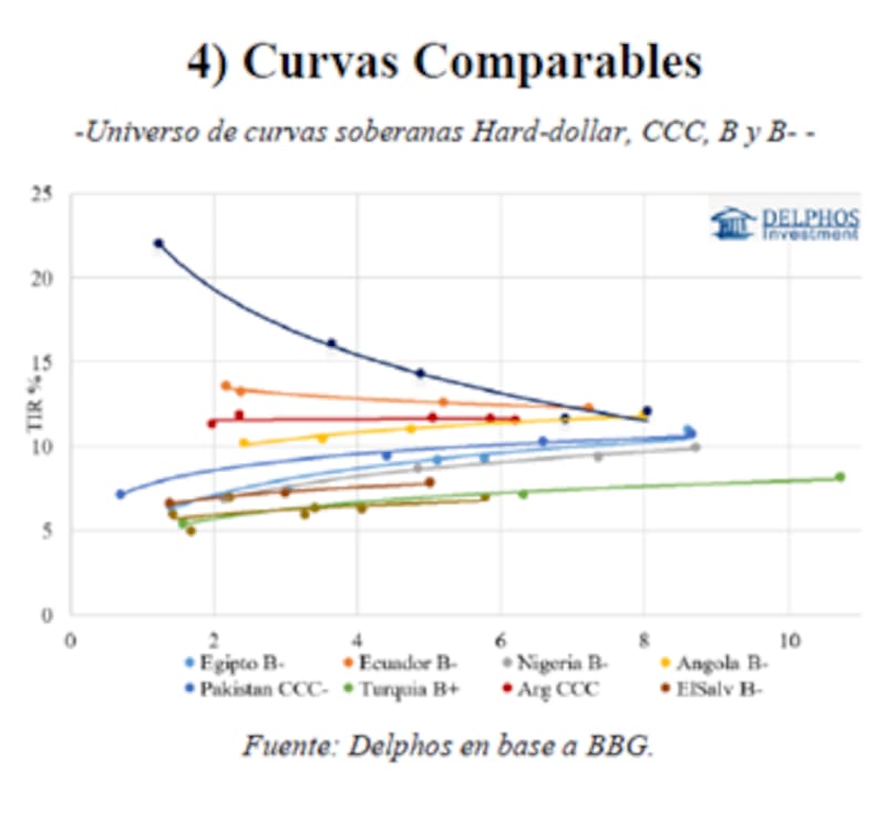 Sobre el futuro de la curva soberana de cara a las elecciones, desde Delphos entienden que los fundamentos del país son suficientes para que la deuda se negocie cerca de una calificación B-.