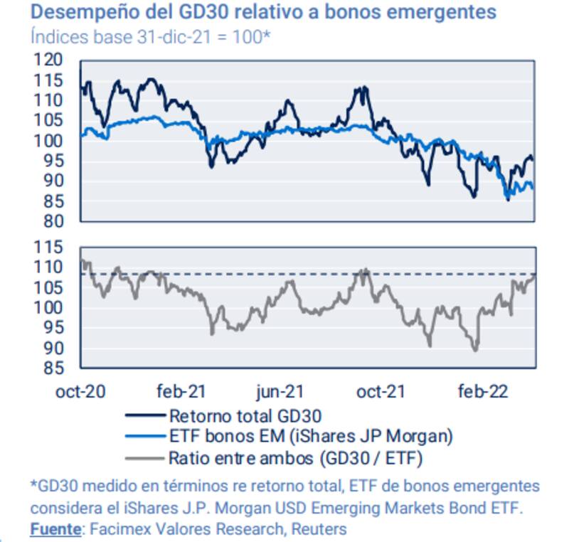 Sin embargo, en las ultimas semanas se ha observado una dinámica mejor de los bonos argentinos respecto de la deuda emergente, lo cual le permite tener una performance superior al de sus pares.