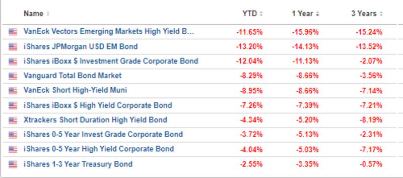 Por ejemplo, si se toma el índice de bonos de referencia, el Bloomberg Barclays US Aggregate Bond Index (AGG), se observa que el mismo acumula una caída del 7,6% desde su máximo reciente.