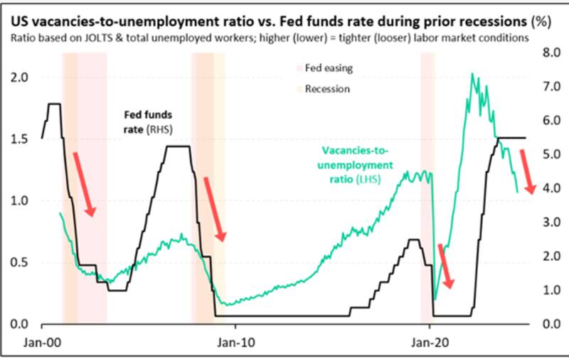 La relación entre puestos vacantes y desempleo en Estados Unidos parece estar en caída libre en estos momentos.