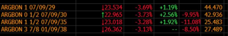 Los bonos soberanos argentinos en Wall Street operan con pérdidas mayores al 3 por ciento.