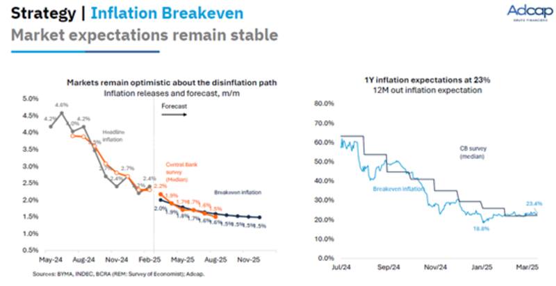 No obstante, si bien el mercado ve una mayor desinflación, los eventos de volatilidad como el actual plantean también desafíos para los instrumentos en pesos.