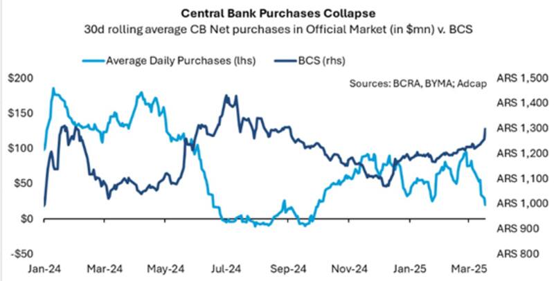 "Venimos de dos datos de Balanza Comercial positivos, pero muy pobre y, en este contexto, el mercado viene viendo que el Central vendió en las últimas cinco ruedas u$s 881 millones, el doble de las ventas de aquella última semana de julio de 2024. En simultáneo, el último dato de inflación vino un poco por arriba de lo esperado. El próximo dato podría volver a leerse como una desaceleración del proceso de inflación", afirmaron.