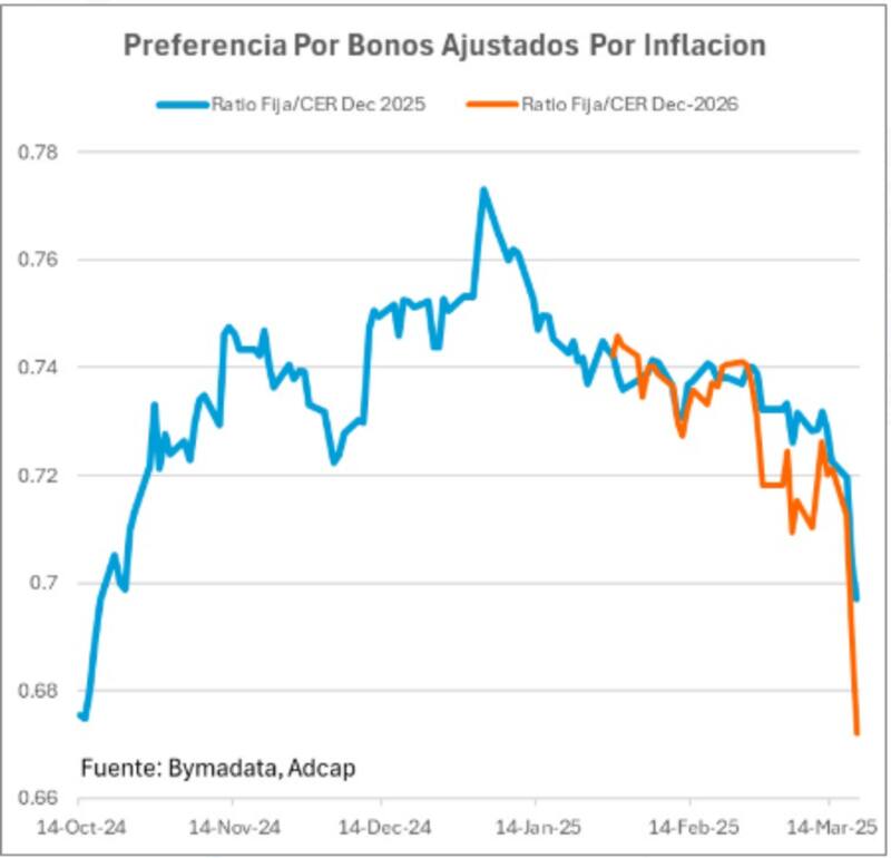 Sin embargo, ante escenarios de tensión cambiaria y nominal, los inversores ven más conveniente pasarse a bonos a tasa CER. La suba en el dólar podría provocar un traslado a precios en la inflación y hacer que el proceso desinflacionario sea más gradual que lo que plantea hoy el mercado.