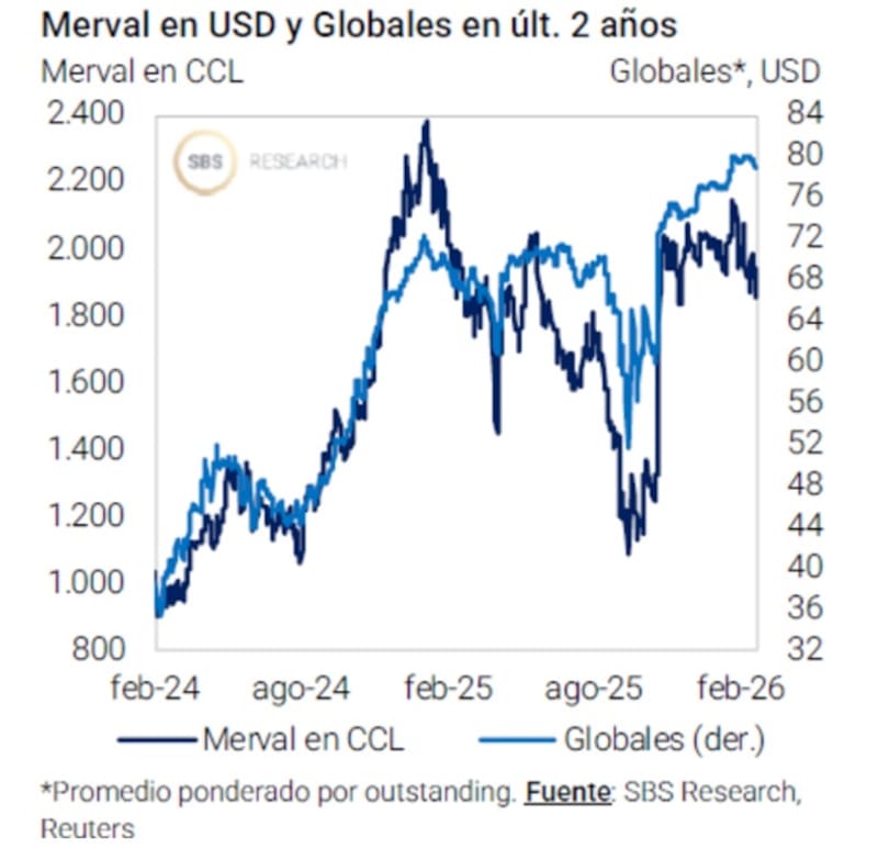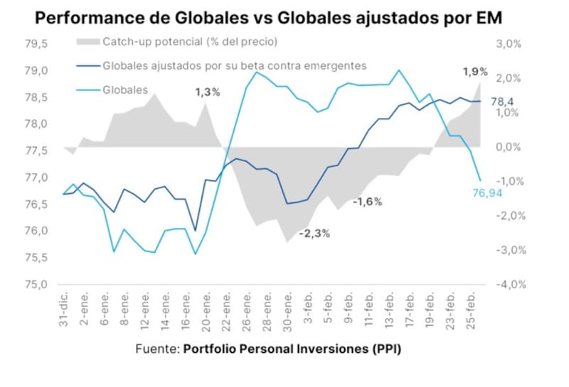 Alejandro Fagan, Estratega en Balanz, advirtió que los Globales la semana pasada mostraron un desempeño algo peor que sus pares, probablemente incorporando que una operación de manejo de pasivos al estilo Ecuador podría tardar más en ocurrir.