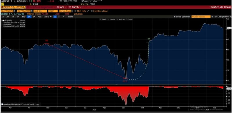 “El Global 2030 se mantiene relativamente firme, respondiendo bien a la acumulación de reservas, mientras que el Global 2035 continúa en modo correctivo”, advierten.
