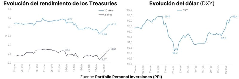 En particular, la tasa a 10 años trepó 5 pbs hasta 4,13% y la de 2 años avanzó 4 pbs hasta 3,58%, en un mercado que empieza a recortar apuestas de bajas de la Fed ante el riesgo de que un shock energético más persistente complique el sendero de inflación.