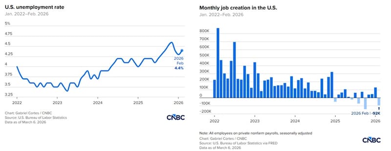 La economía de EEUU destruyó 92.000 puestos durante el mes de febrero, en comparación con la estimación de creación de empleos de 50.000 y también bien por debajo del total revisado a la baja de enero de 126.000.