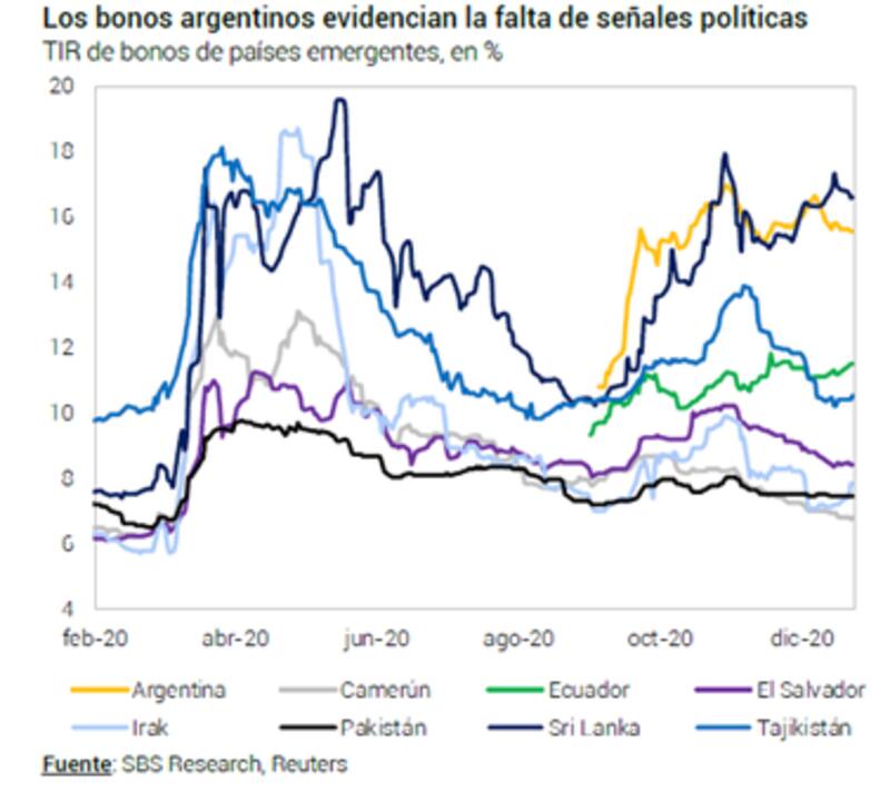 Aislado de dicha dinámica se encuentran solamente los bonos de Sri Lanka y de la Argentina, con tasas del 17% y 16% respectivamente y que, en vez de comprimir sus spreads, los han ampliado.